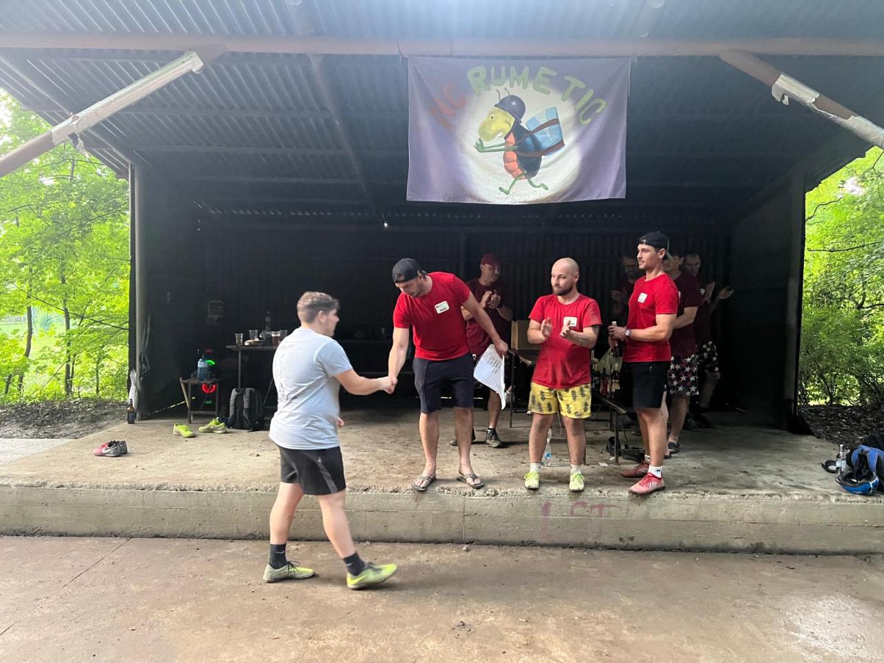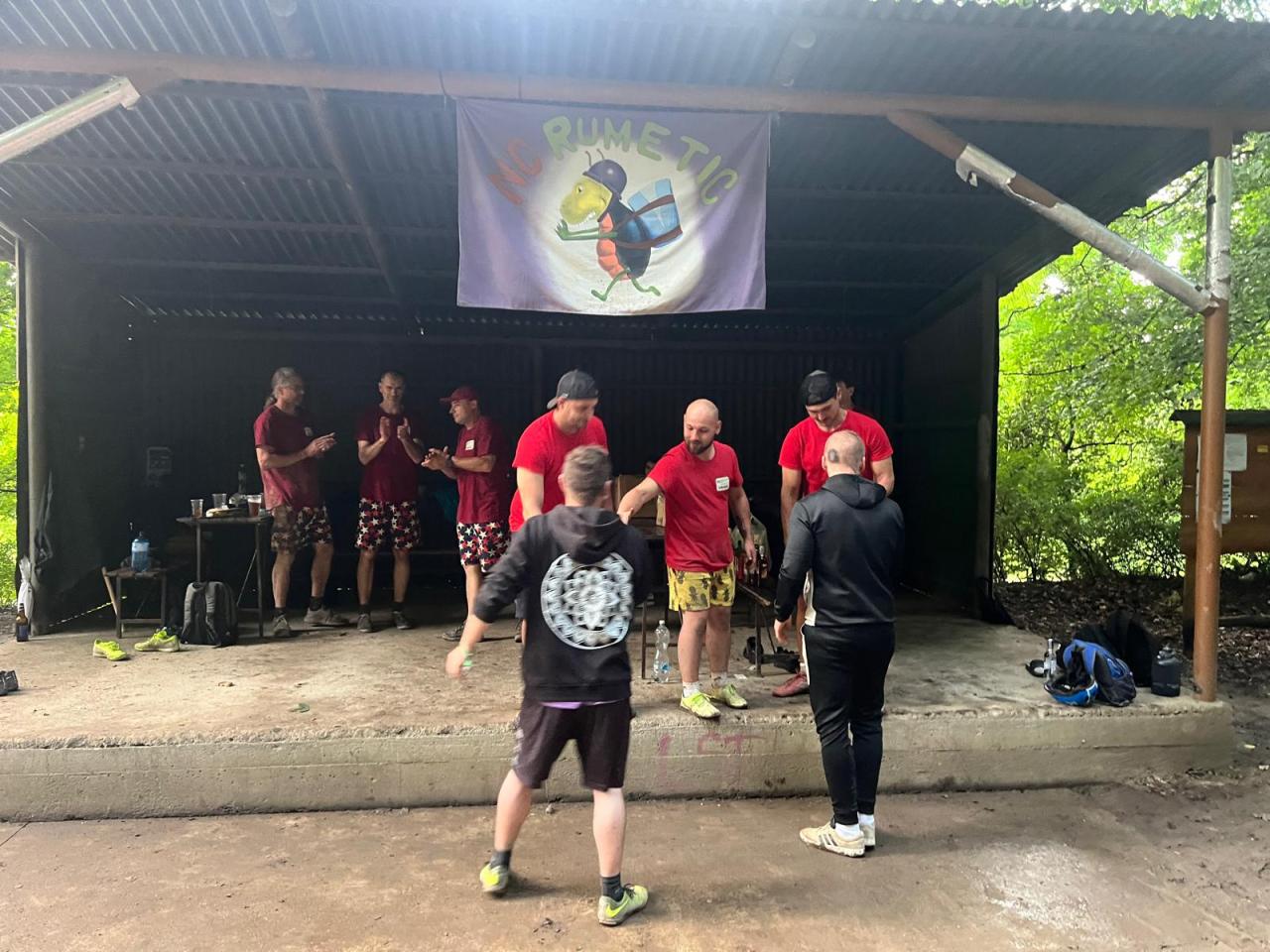 V průběhu dne jsme museli udělat několik přestávek, během kterých jsme se ukryli před deštěm, a následně jsme s přispěním ostatních hráčů upravili hřiště. Na tyto úpravy a alespoň částečné vysušení jsme spotřebovali spoustu pytlů pilin, ale díky zápalu všech zúčastněných se povedlo turnaj dohrát až do konce.
