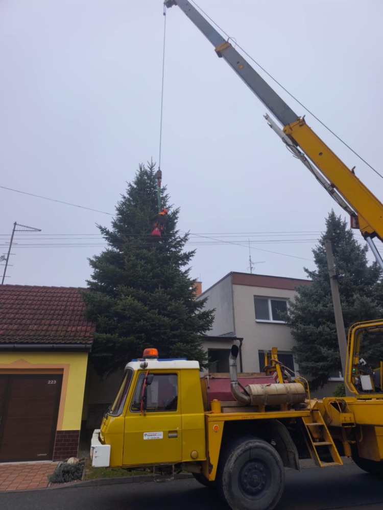 Instalace stromu proběhla ve středu 12. listopadu. Ráno proběhlo kácení, které nebylo jednoduché, protože se v blízkosti stromu nacházelo elektrické vedení. Obec proto musela ještě před kácením stromu žádat o povolení k vypnutí elektřiny společnost EG.D, bez tohoto povolení by bylo kácení nemožné. Po pokácení a naložení stromu na podval byl strom převezen do Louky, kde byl za pomocí jeřábu instalován. Odborné pokácení a následnou úpravu kmene provedl pan Petr Prášek s pomocí obecních zaměstnanců. Strom následně ozdobí pan Kraus a 30. listopadu, na první adventní neděli, se společně sejdeme u slavnostního rozsvícení.