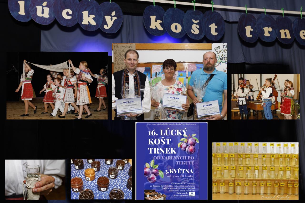 Již 16. Lúcký košt trnek – od vařených po tekuté, sobota 3. května KD Louka.. Mohli jste okoštovat pochutiny nejen z trnek, tekutých vzorků byla stovka. Zlaté medaile si odnesli: Miroslav Múčka – Strážnice, Jan Maňák Louka 230 a Radek Škopík Louka 204. K dobré atmosféře přispívala Lúcká HCM Háj.