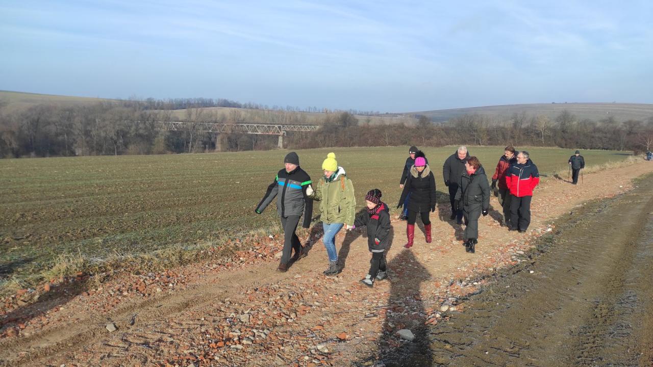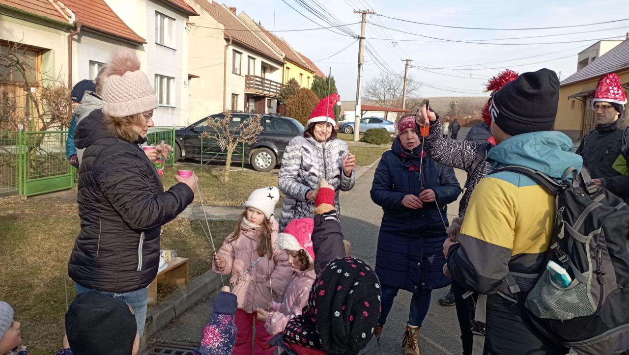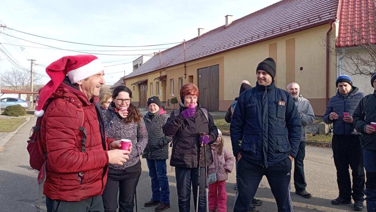 Již tradičnímu novoročnímu výšlapu přálo letos počasí. Jasná obloha a teplota mírně pod nulou byla ideální pro malou procházku kolem Louky. Tentokrát jsme vyrazili směrem "Pod háj" a vystoupali jsme k železniční trati. Pak kolem nádraží jsme přešli na "Petrovy díly" a přes malý potůček jsme vstoupili na Lipovské louky. Pro mnohé to byla první cesta tímto směrem. Dále nás cesta vedla na lipovské hřiště a přes Maňáčany do cíle v Dolním konci. Letos se sešlo 50 turistů , turistek a turisčat :-). V cíli nás čekal chléb se sádlem a cibulí a pro zahřátí tu byl svařák a čaj. Všem chceme poděkovat za hojnou účast a příští rok se těšíme na viděnou :-)