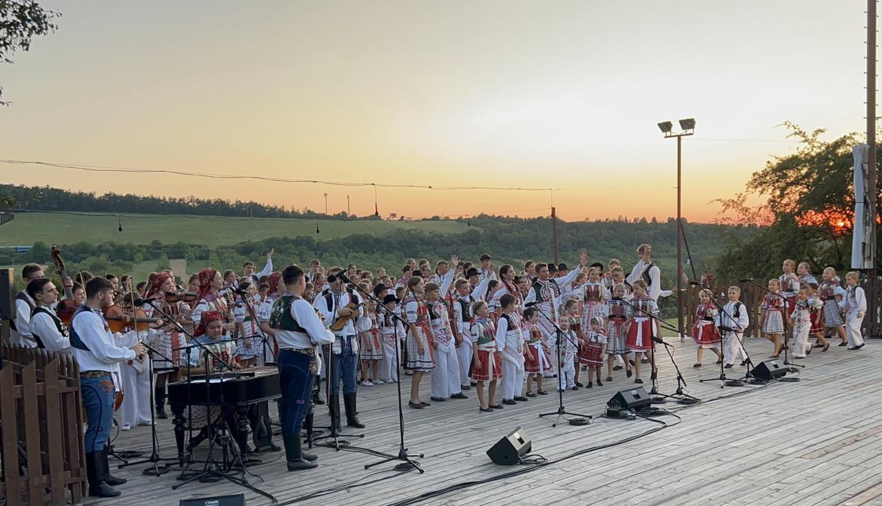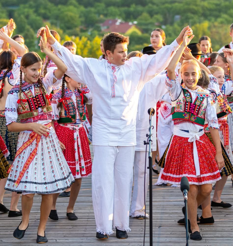 Letos jsme se na HS 2025 v sobotu večer v dětském pořadu vydali na cestu plnou práce, her, zpěvu i tance. Právě děti z Lúčánku provázely celé pásmo a tvořily jeho dějovou linku. Diváky provedly příběhem Aničky a Matúška. Oba hrdinové symbolizovali dětský svět na Horňácku, jejich den byl plný práce i hry, drobných radostí i starostí. Anička snila o novém fěrtúšku, zatímco Matúšek jí ukazoval, že k němu nevede zkratka, ale poctivá práce a ochota přiložit ruku k dílu. V jejich příběhu se tak odrážely situace, které kdysi prožívaly generace dětí na dědině: od pomocí doma a na poli až po chvíle, kdy se v písni a tanci ztrácela únava i starosti. Diváci během pořadu viděli, že na Horňácku se toho mezi prášením od motyky a zatočením v kole může stát víc, než by si člověk domyslel. Andrea Bělínová i Daniel Dvořáček se hlavních rolí ujali s lehkostí a jistotou, která si zasloužila obdiv.