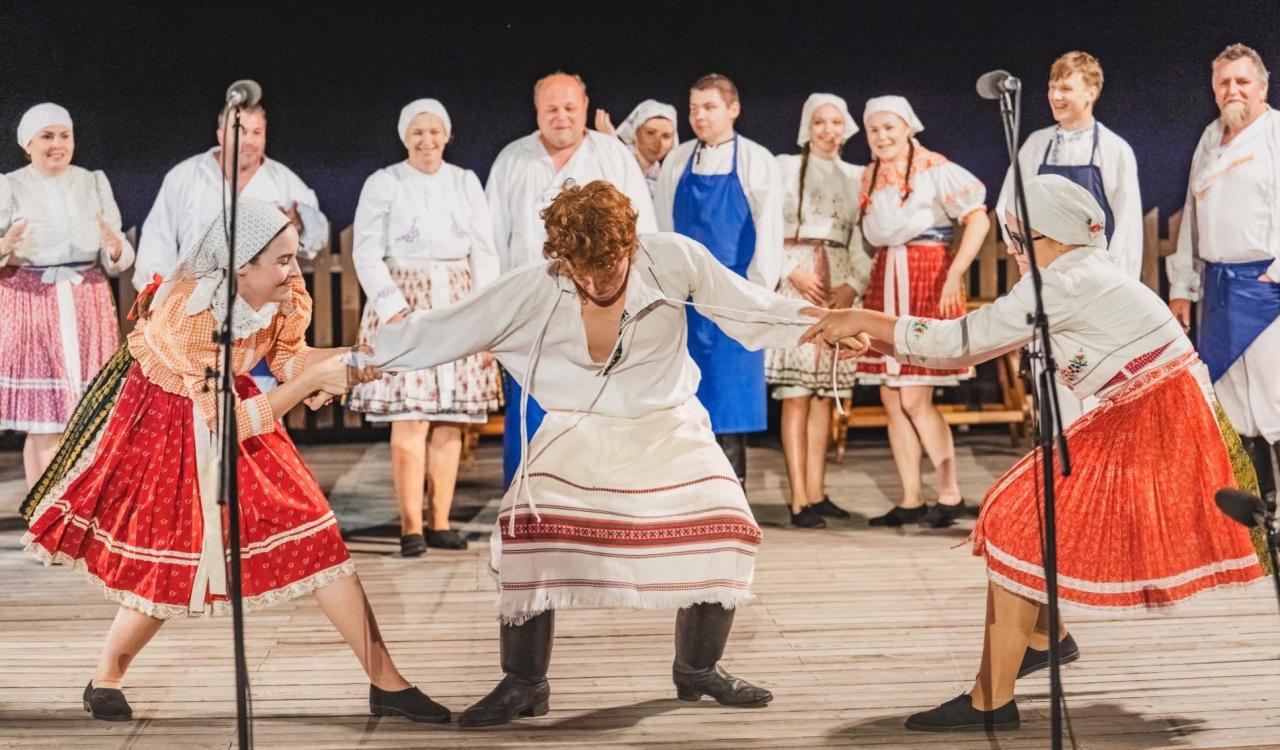 Tanečníci a zpěváci z Louky se letos na Horňáckých slavnostech představili v pátečním programu vstupem „Co sa stało ve stodole?“ – v pracovních krojích, s vůní slámy, za doprovodu HCM Háj a s příběhem, který dokázal diváky rozesmát i dojmout. Soubor z Louky na jevišti propojil doslova všechny generace: od těch, kteří sotva opustili základní školu, až po pamětníky v důchodu. Bylo vidět, že si to všichni účastníci užívají – z jejich zpěvu i tance šla radost a energie.